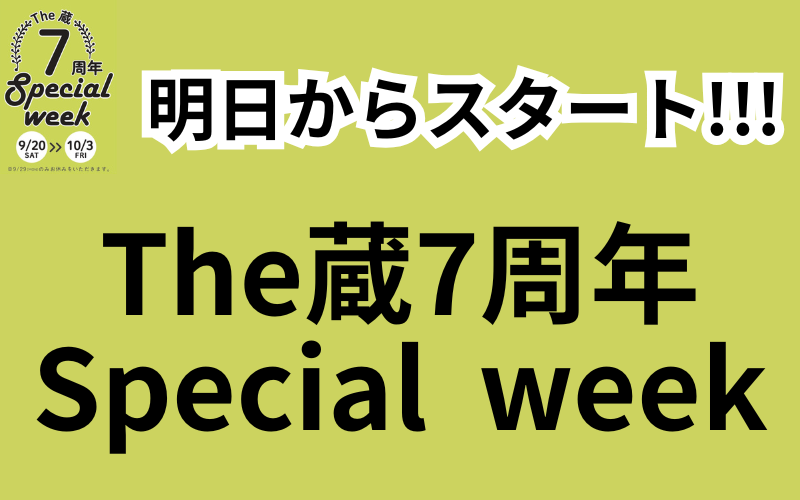 ついに明日、9月20日(土)より「The蔵7周年Special week」が始まります!!