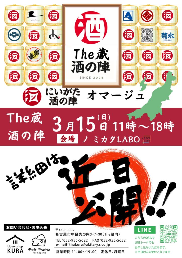 ・3月15日(日)The蔵酒の陣 11時~18時 ※詳細は後日ご案内いたします。